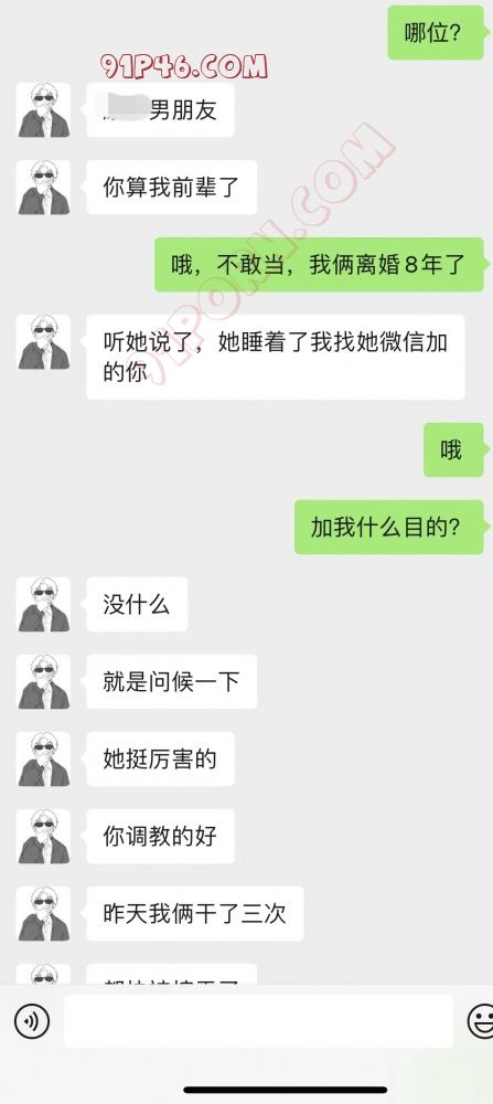 一早醒来发现有人加我,然后就是前妻的几张裸照。聊下来才发现是前妻的现男友。可能前妻的微信备注还是“老公”所以才导致人来宣示主权了。上来就发自己女人裸照给前任也是大无语!